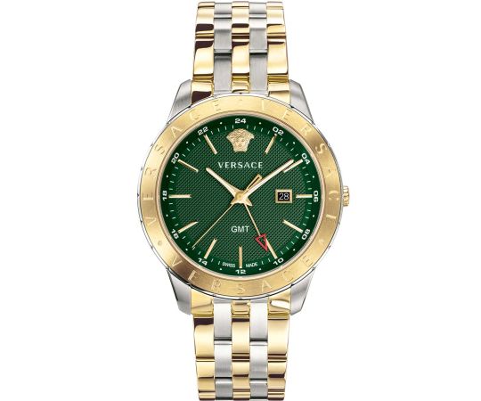 quartz movement (with battery) that, as is usual for Versace watches, guarantees precise timekeeping and provides the following functions: Hour, Minute, Second, Date, 2 timezones, GMT.