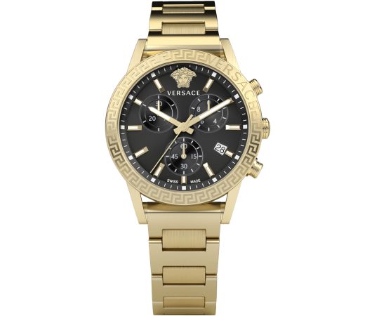 quartz movement (with battery) that, as is usual for Versace watches, guarantees precise timekeeping and provides the following functions: Hour, Minute, Second, Date, Chronograph.
