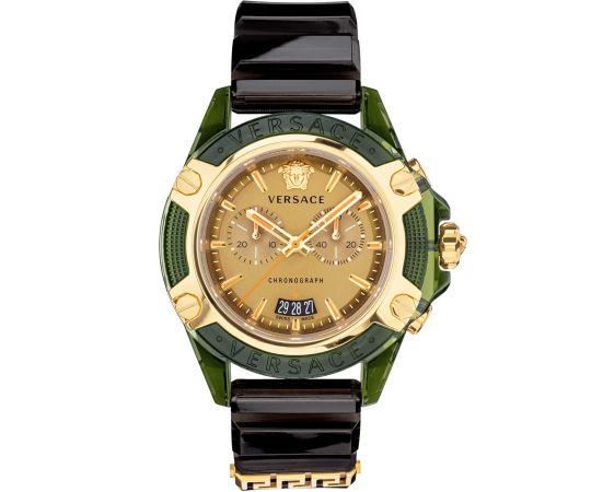 quartz movement (with battery) that, as is usual for Versace watches, guarantees precise timekeeping and provides the following functions: Hour, Minute, Second, Date, Chronograph.