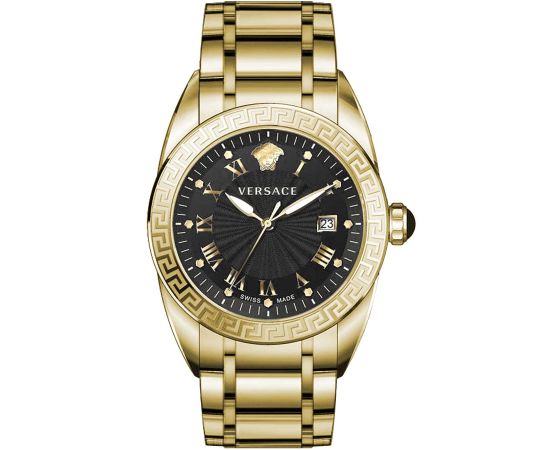 Modern Versace Mens watch VFE160017. Colors > Dial: Grey, Strap: Gold, Case: Gold. Very comfortable Stainless steel strap. The water resistance is 5 ATM. A scratch proove anti-reflecting, Saphire glass protects your watch from involuntary injuries.