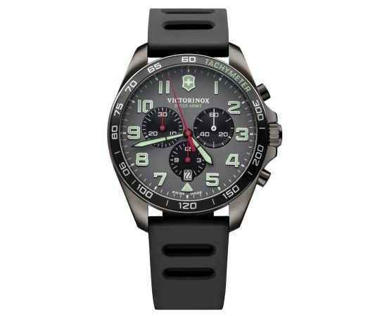 quartz movement (with battery) that, as is usual for Victorinox watches, guarantees precise timekeeping and provides the following functions: Chronograph, Date, Minute, Second, Hour.