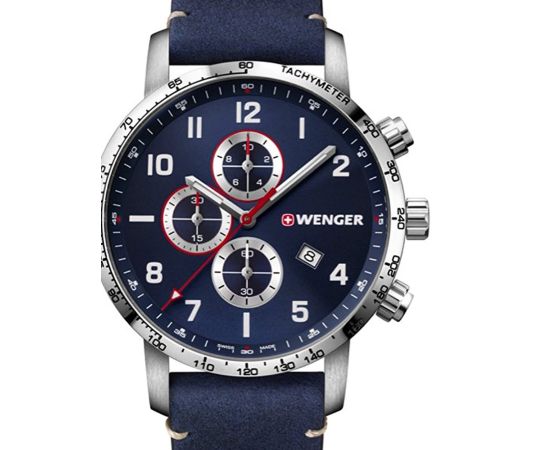 Swiss Made quartz movement (with battery) that, as is usual for Wenger watches, guarantees precise timekeeping and provides the following functions: Chronograph, Date, Minute, Second, Hour.