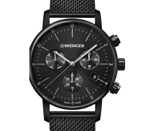 Swiss Made quartz movement (with battery) that, as is usual for Wenger watches, guarantees precise timekeeping and provides the following functions: Chronograph, Date, Minute, Second, Hour.