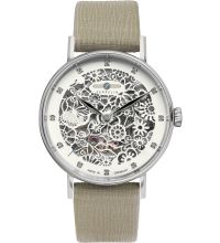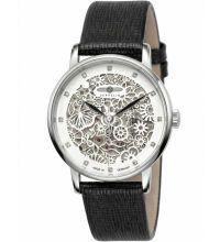 The Round case is 36 mm wide and 11 mm height and, depending on individual taste, will adorn almost any wrist. The bezel, which is Fixed, stands out discreetly from the case. The case back of the watch is a Glas bottom, pressed, which sets the final point for a coherent design.