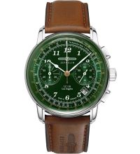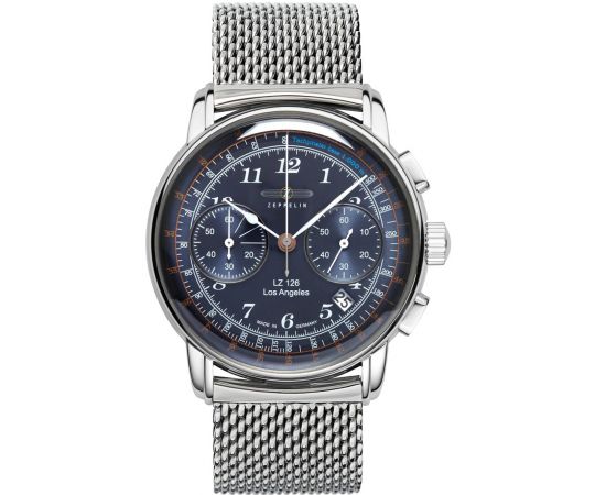 quartz movement (with battery) that, as is usual for Zeppelin watches, guarantees precise timekeeping and provides the following functions: Chronograph, Date, Minute, Second, Hour.
