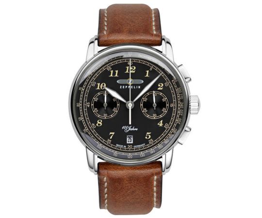quartz movement (with battery) that, as is usual for Zeppelin watches, guarantees precise timekeeping and provides the following functions: Chronograph, Date, Minute, Second, Hour.