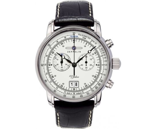 quartz movement (with battery) that, as is usual for Zeppelin watches, guarantees precise timekeeping and provides the following functions: Chronograph, Date, Minute, Second, Hour.
