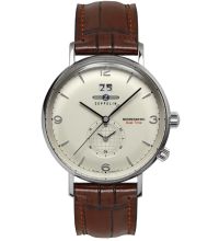 quartz movement (with battery) that, as is usual for Zeppelin watches, guarantees precise timekeeping and provides the following functions: Hour, Minute, Second, Date, 2 timezones.