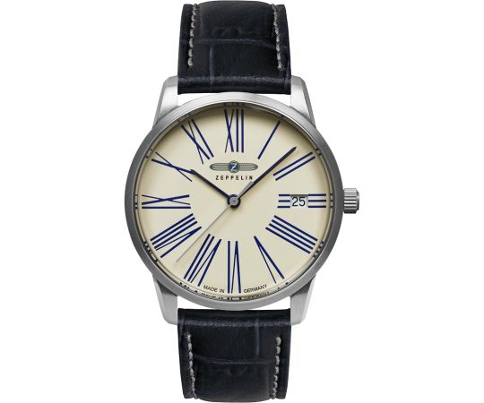 quartz movement (with battery) that, as is usual for Zeppelin watches, guarantees precise timekeeping and provides the following functions: Hour, Minute, Second, Date.