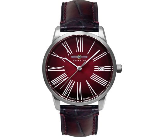 quartz movement (with battery) that, as is usual for Zeppelin watches, guarantees precise timekeeping and provides the following functions: Hour, Minute, Second, Date.