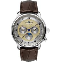 quartz movement (with battery) that, as is usual for Zeppelin watches, guarantees precise timekeeping and provides the following functions: Hour, Minute, Second, Date, Day, Moon phase.