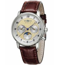 quartz movement (with battery) that, as is usual for Zeppelin watches, guarantees precise timekeeping and provides the following functions: Date, Minute, Moon phase, Second, Hour, Day.