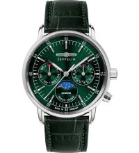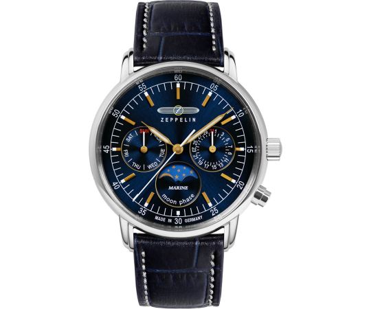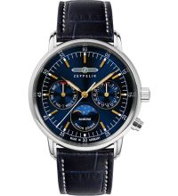 quartz movement (with battery) that, as is usual for Zeppelin watches, guarantees precise timekeeping and provides the following functions: Hour, Minute, Second, Date, Day, Moon phase.