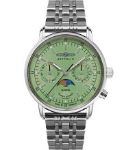 quartz movement (with battery) that, as is usual for Zeppelin watches, guarantees precise timekeeping and provides the following functions: Hour, Minute, Second, Date, Day, Moon phase.