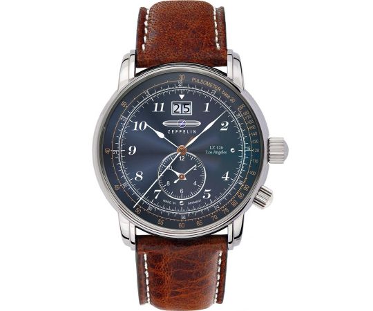 quartz movement (with battery) that, as is usual for Zeppelin watches, guarantees precise timekeeping and provides the following functions: Date, Minute, Second, Hour, 2 timezones.