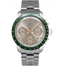 quartz movement (with battery) that, as is usual for Zeppelin watches, guarantees precise timekeeping and provides the following functions: Hour, Minute, Second, Date, Chronograph.